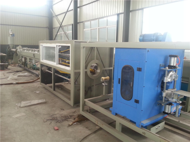 真空定径箱的特殊设计,可以确保直径尺寸的稳定和圆整度,速度控制系统,使牵引速度稳定。整条生产线可采用PLC控制,液晶屏幕控制面板,操作简便。可以配备色标挤出机,使生产的管材有色标线。