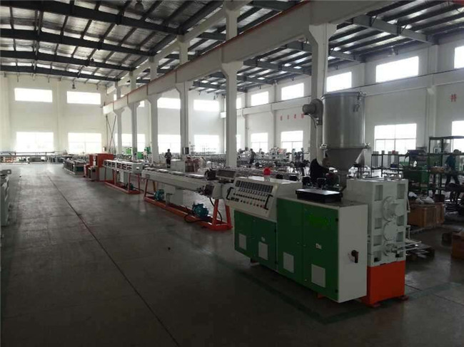 真空定径箱的特殊设计,可以确保直径尺寸的稳定和圆整度,速度控制系统,使牵引速度稳定。整条生产线可采用PLC控制,液晶屏幕控制面板,操作简便。可以配备色标挤出机,使生产的管材有色标线。